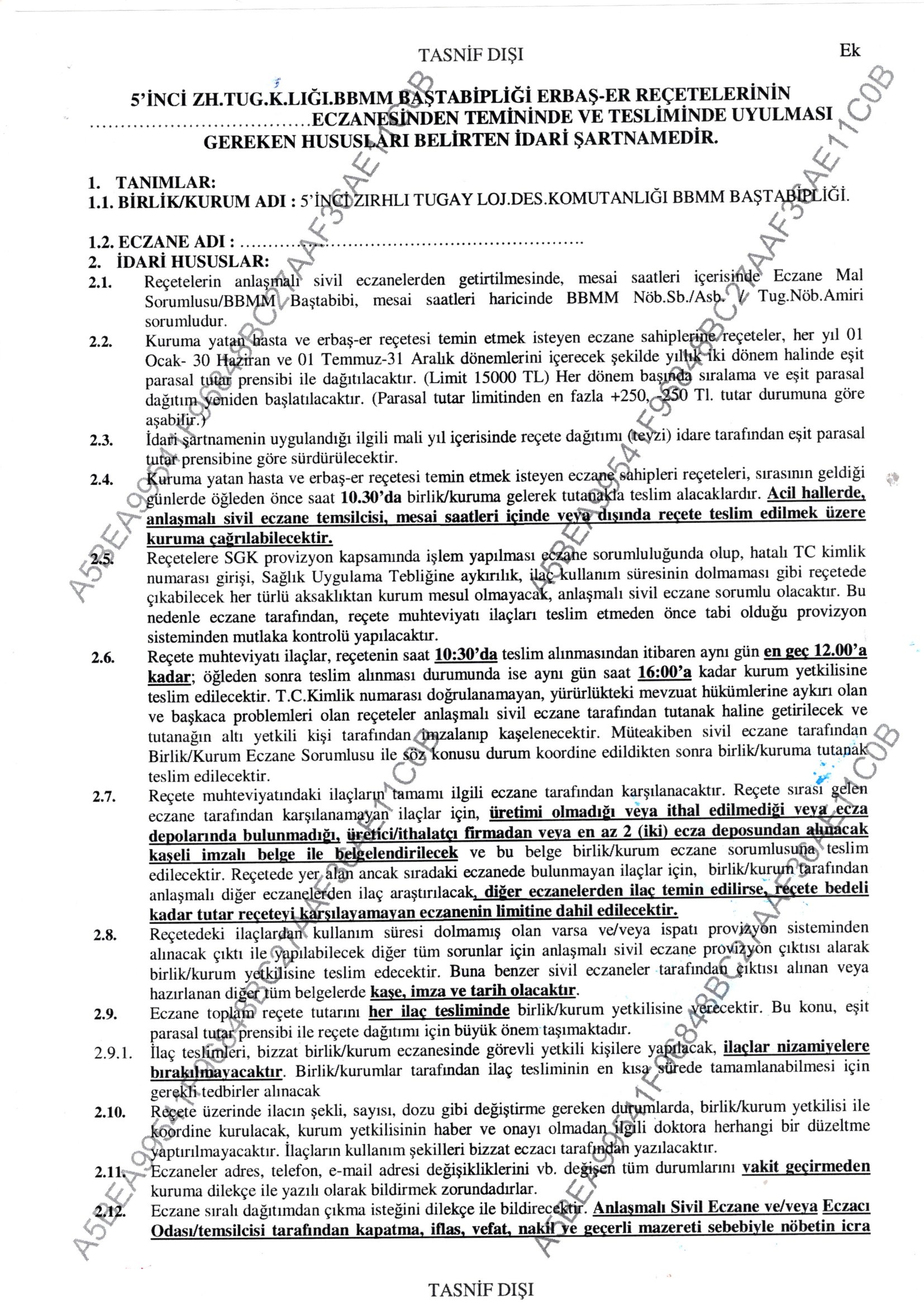 Zırhlı Tugay Komutanlığıyla Anlaşma Yapmak İsteyen Eczaneler Hk.