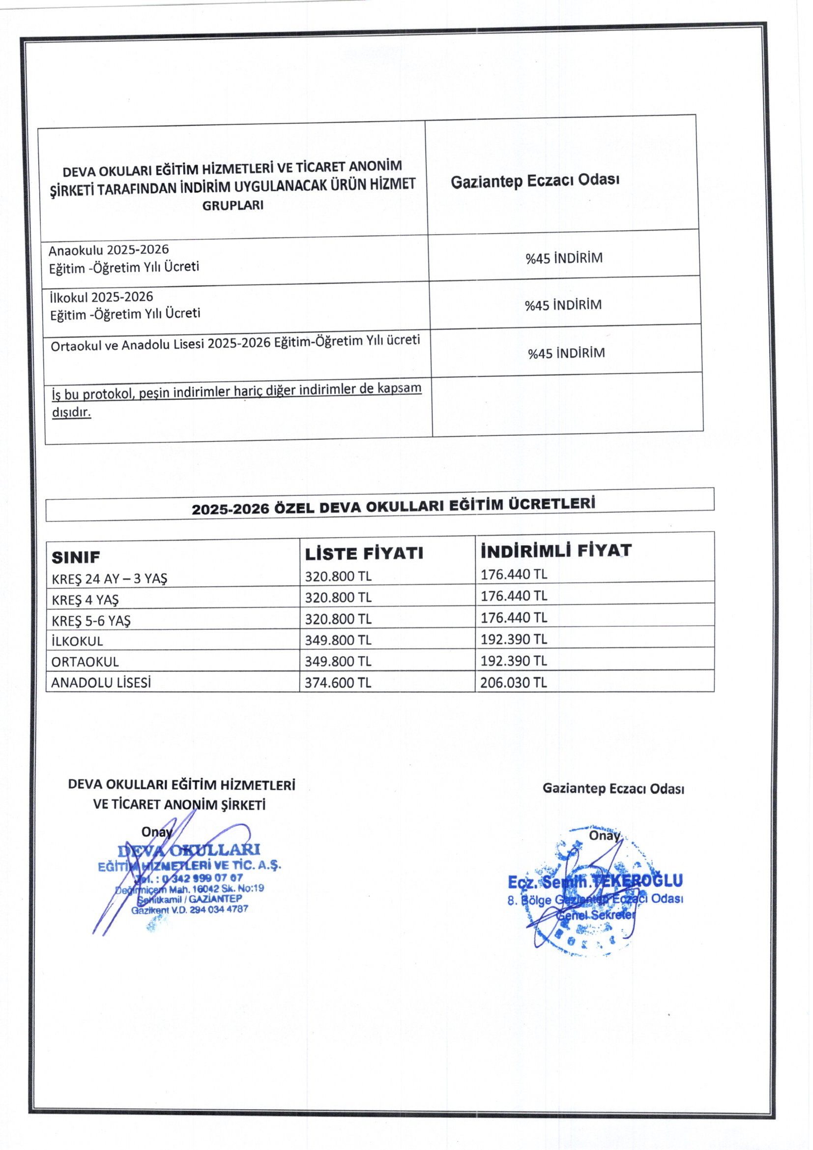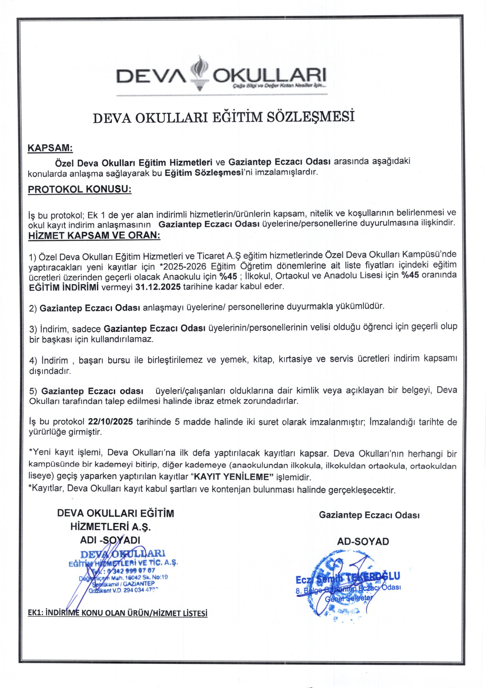 EĞİTİM-ÖZEL DEVA OKULLARI İNDİRİM PROTOKOLÜ HK.