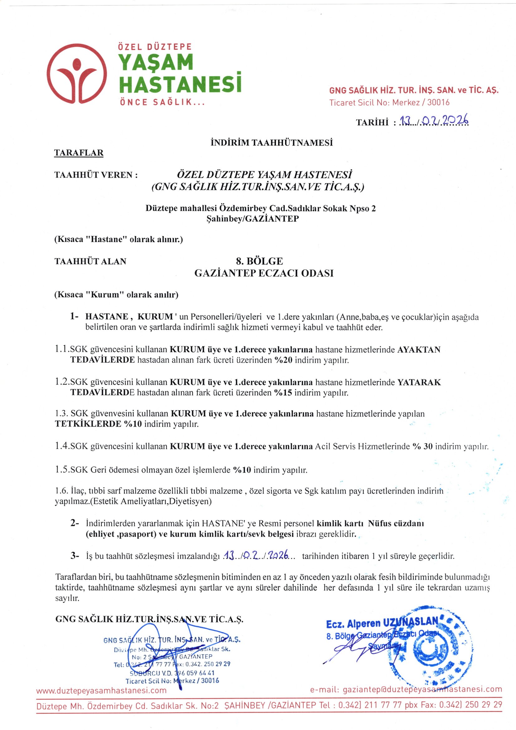 SAĞLIK-Özel Düztepe Yaşam Hastanesi İndirim Protokolü Hk.