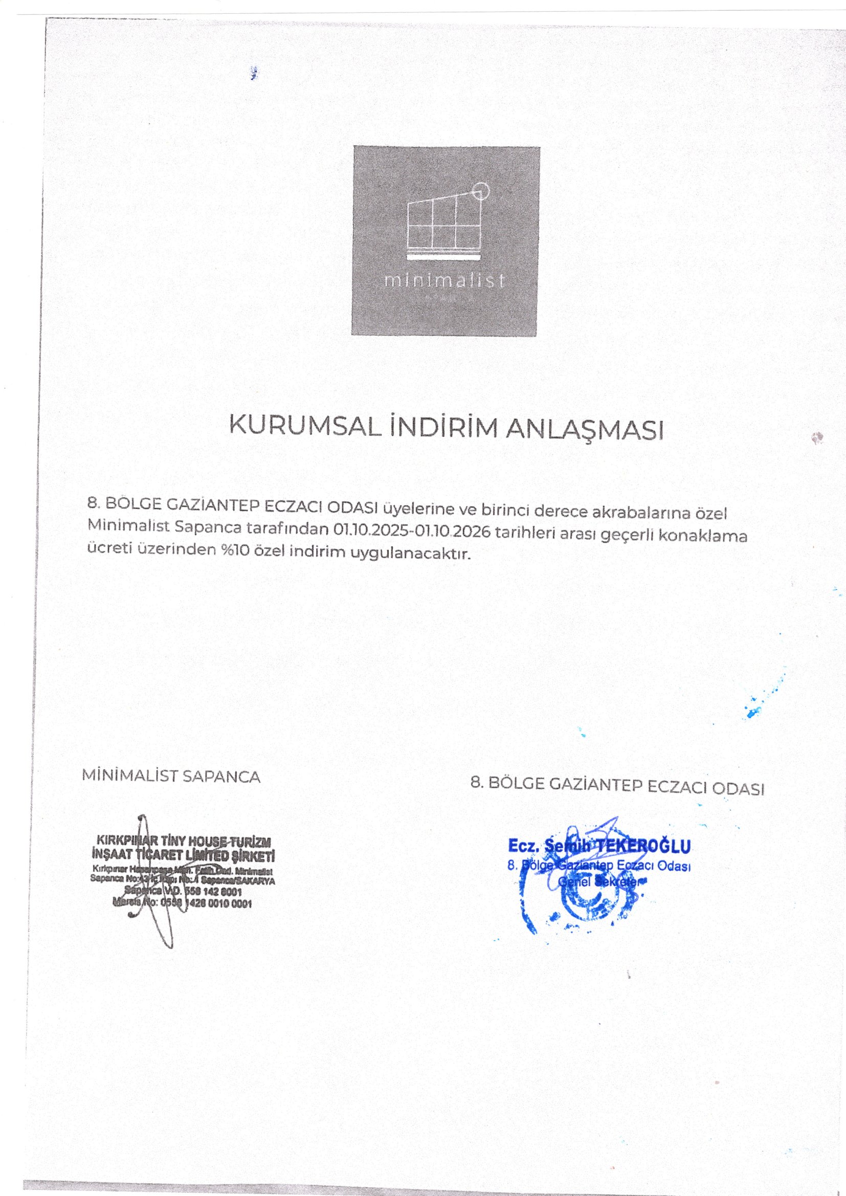 TATİL-Minimalist Sapanca Kırkpınar Tiny House İndirim Protokolü Hk.